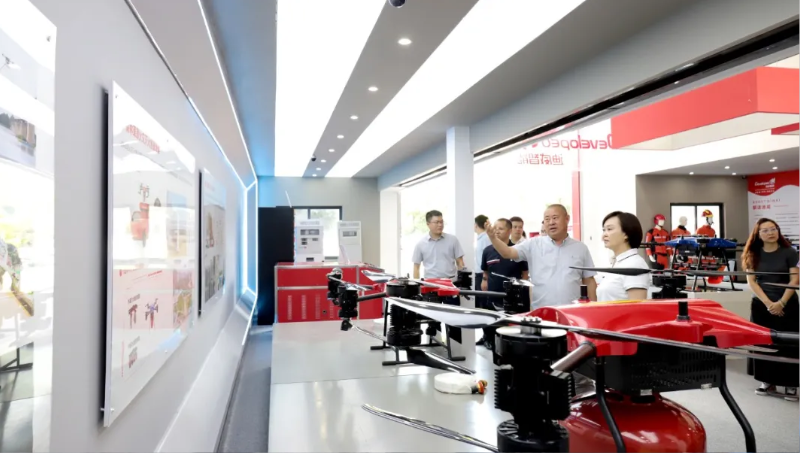 公司董事長甘建業(yè)向考察組詳細(xì)匯報(bào)了企業(yè)經(jīng)營狀況、核心優(yōu)勢和發(fā)展規(guī)劃,并陪同考察組走進(jìn)公司的多功能展示廳和研發(fā)中心,實(shí)地參觀了解消防救援無人機(jī)、CAFS泡沫發(fā)生系統(tǒng)等智能化救援裝備的科技創(chuàng)新成果。近年來,按照國家“十四五”應(yīng)急管理裝備發(fā)展規(guī)劃,立足適應(yīng)應(yīng)急救援裝備更新?lián)Q代需要,我司自主研發(fā)高空滅火救援快反系統(tǒng)可有效解決超高層建筑火災(zāi)消防救援難題,廣泛應(yīng)用于城鄉(xiāng)森林滅火、地震山體滑坡、通信技術(shù)保障等綜合應(yīng)急救援場景。